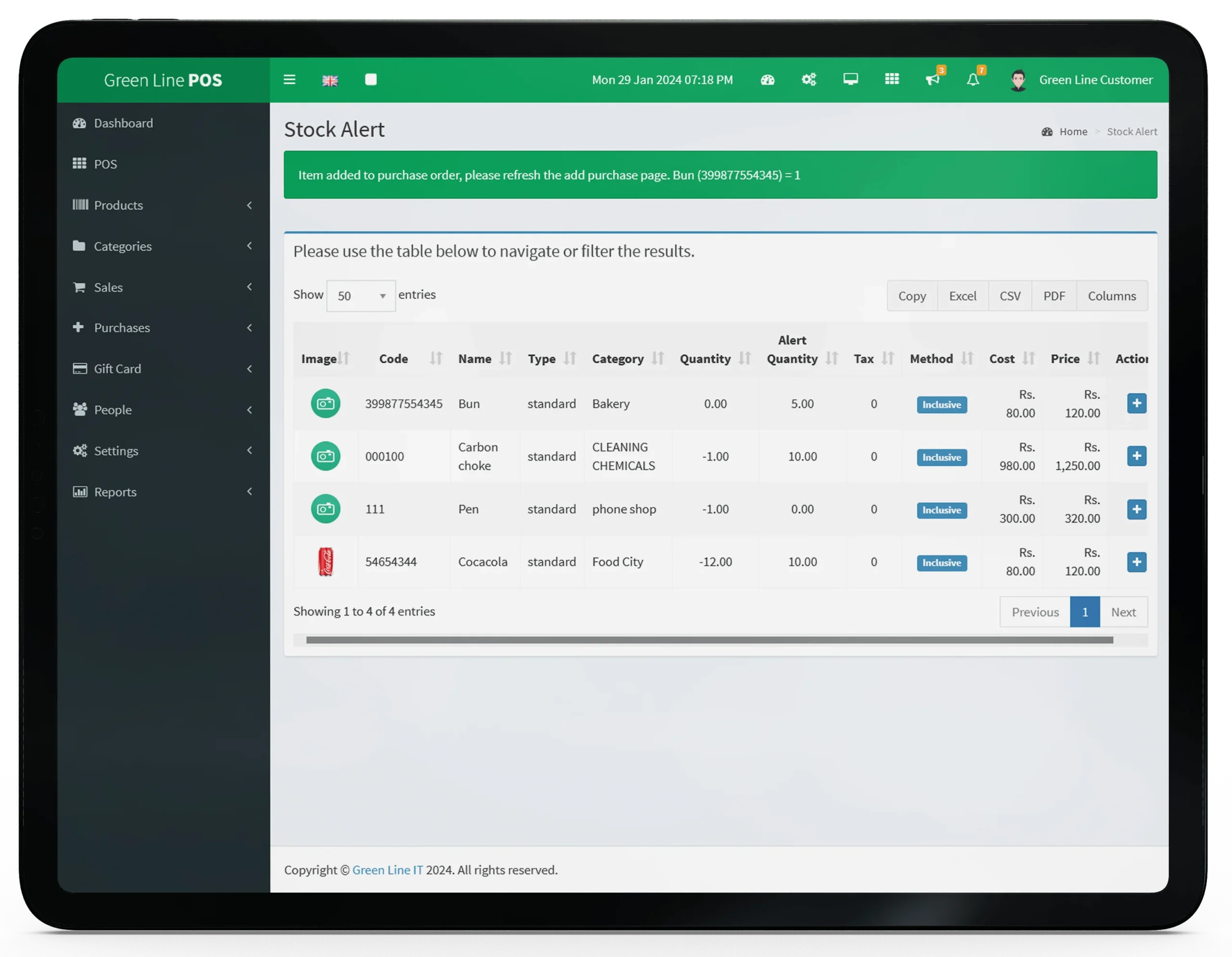 - Easily identify low-stock items from your Point of Sale interface to streamline reordering.